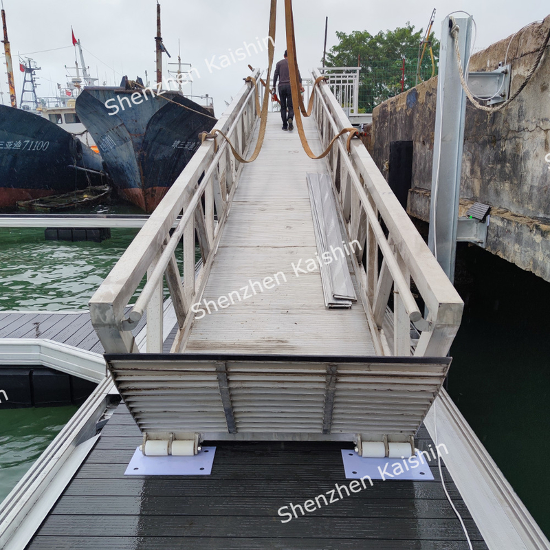 The guardrail features a rigid beam design. An additional top truss design is incorporated to enhance stability and load capacity, while offering support for the sturdy aluminum handrail. The length and width of the gangway can be customized to suit specific requirements.